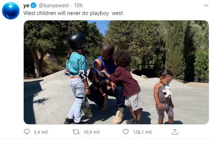 Aunque esos mensajes ya no aparecen en la red social del rapero, si hay una foto de Kanye con sus hijos que acompañó con el texto: Las chicas del oeste nunca lo harán Playboy«.