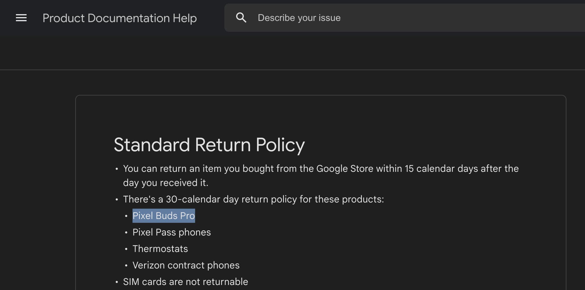 Como Punto hoy Pixel Buds Pro son los productos más nuevos que se pueden devolver dentro de los 30 días calendario que lo recibas.