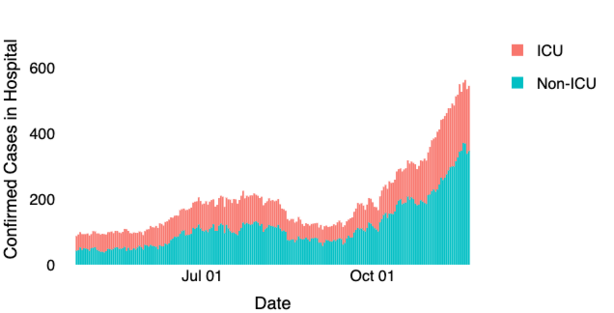 De los 545 habitantes de Utah hospitalizados con casos confirmados de COVID-19, casi 200 están recibiendo tratamiento en la UCI, informaron funcionarios estatales de salud.